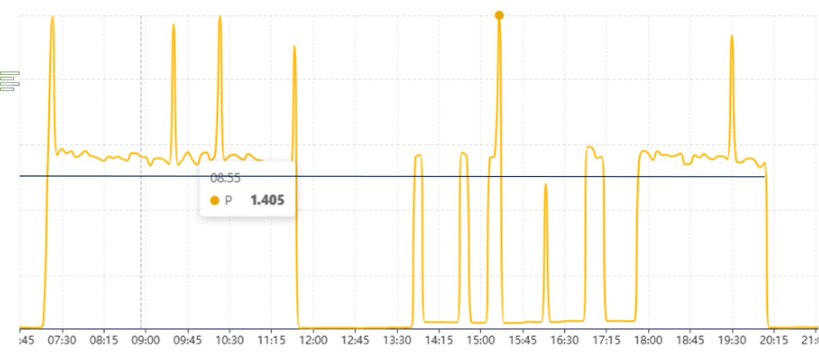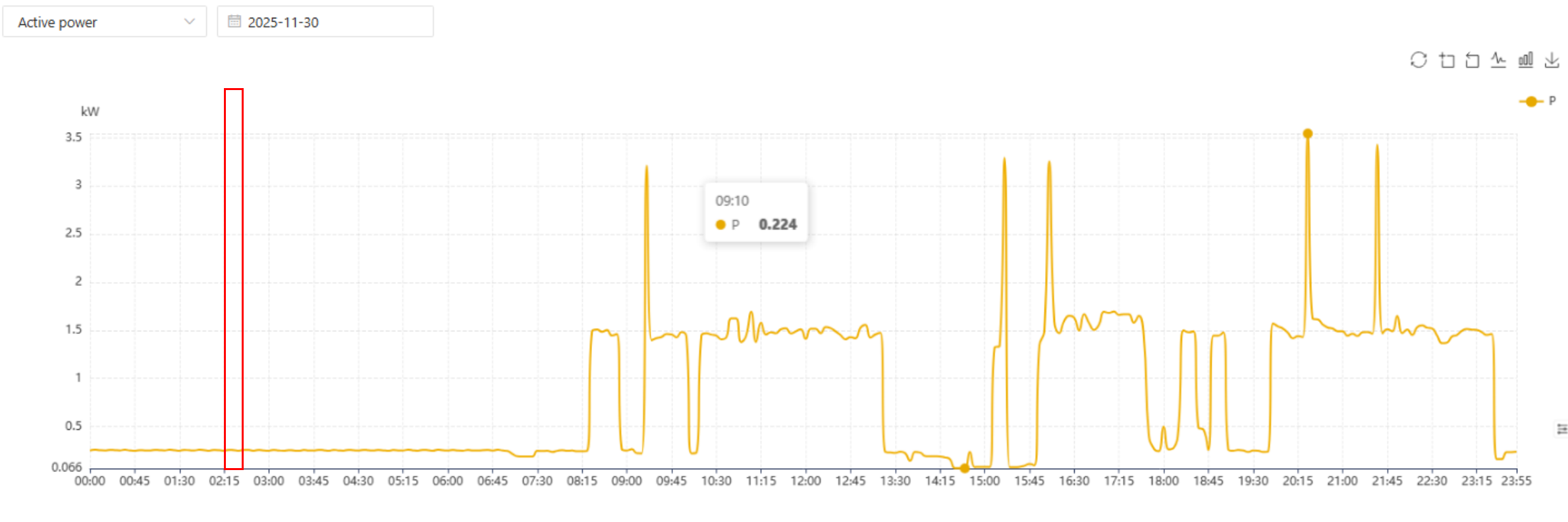 Maximálny odber predstavuje najvyššiu priemernú hodnotu výkonu zaznamenanú počas fakturačného cyklu (zvyčajne jeden mesiac) v rámci týchto intervalov odberu. Zatiaľ čo štandardný interval je 15 minút, môže sa líšiť v závislosti od siete alebo regiónu.