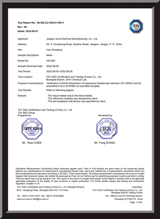 Výrobné zariadenie spoločnosti, Jiangsu Acrel Electric Manufacturing Co., Ltd., dodržiava prísne normy kvality a environmentálne smernice s pokročilými testovacími centrami a záväzkom k výrobným procesom bez olova. Tím viac ako 500 inžinierov spoločnosti Acrel dodáva špičkové systémy energetickej účinnosti a inteligentné energetické riešenia.