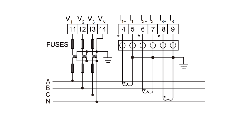 | Vstup | Pripojenie | Jednofázový-2-vodičový, 3-fázový-3-vodičový, 3-fázový-4-vodičový | ||