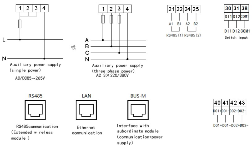 Séria Acrel ADF400L je tiež vybavená užívateľsky prívetivým LCD displejom s podsvietením, ktorý umožňuje jednoduché čítanie meraní, ako je napätie, prúd, aktívny výkon, jalový výkon, zdanlivý výkon, účinník a frekvencia. Jeho komunikačné schopnosti sú ďalej vylepšené infračervenou komunikáciou spolu s rozhraniami RS485 a Ethernet, ktoré podporujú protokoly Modbus a DL/T 645, čím sa zabezpečuje bezproblémová integrácia s rôznymi systémami riadenia energie. Vďaka vysokej presnosti merania, rozsiahlym funkciám a flexibilným možnostiam inštalácie je viacokruhový elektromer ADF400L ideálnou voľbou pre efektívne a presné monitorovanie a správu energie.