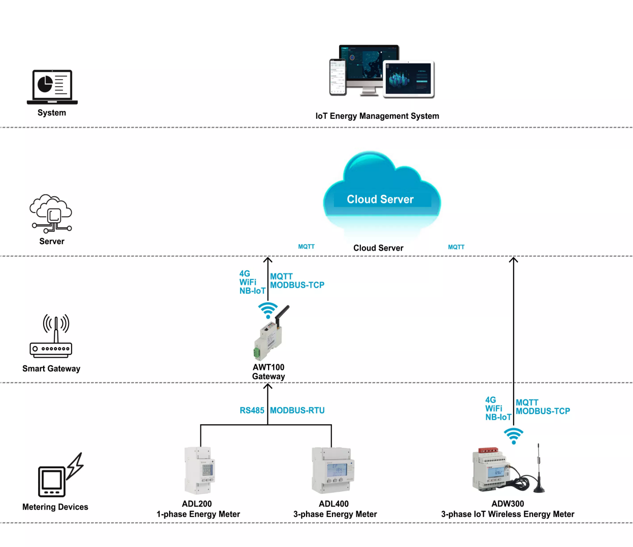 | ADW300 | Bezdrôtový merač ADW300 sa používa hlavne na meranie trojfázového činného výkonu nízkonapäťovej siete. Disponuje komunikáciou RS485 a funkciami bezdrôtovej komunikácie WiFi/4G/Ethernet/LoRa, čo je pre používateľov pohodlné na sledovanie, čítanie a správu spotreby elektrickej energie. Môže byť flexibilne inštalovaný v rozvodnej skrini na dosiahnutie podpoložky merania výkonu, štatistiky a analýzy rôznych oblastí a rôznych zaťažení. | |
