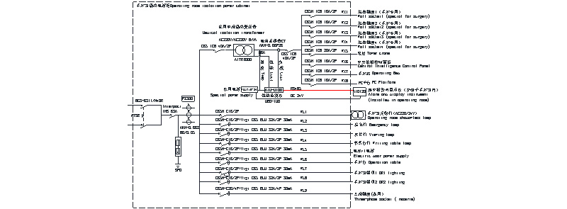 Riešenia distribúcie v operačnej sále (napríklad schéma systému elektrickej skrine GGF-O8G)